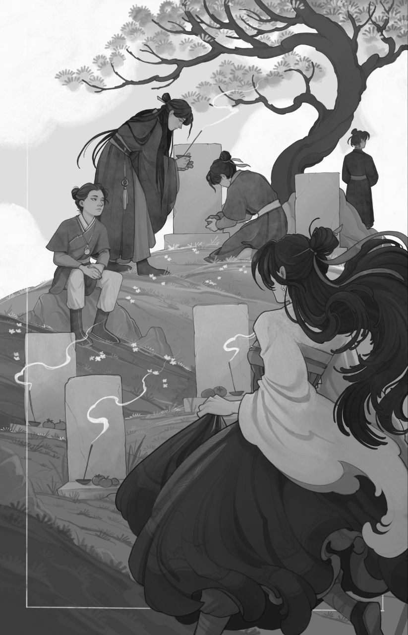 — Отец… — Ему тяжело было говорить, и Шэ Юэ едва не взяла его за рукав. — Сегодня исполняется десять лет с тех пор, как Агатовый владыка подло убил тебя. Демоны с Агатовой горы думали, что смогут уничтожить клан Шэ и школу Серебряного Ручья. Но вот ещё год прошёл, а мы всё живы. Мы все стараемся, отец! И матушка, и братец Юй, и сестрица Юэ, и братец Янь.