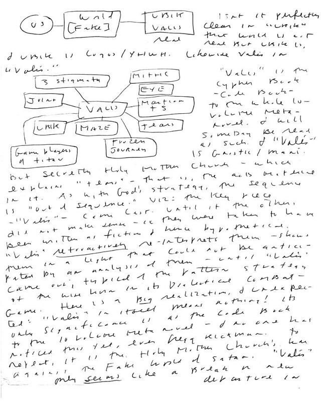 Основной поток видений завершился в марте 1974 года, когда Дик получил некое письмо, полное странных намёков (до него мы ещё дойдём). Порядком измотанный откровениями, переживший развод и попытку самоубийства фантаст вновь нашёл в себе силы сочинять беллетристику лишь в 1976 году. В «ВАЛИСе» и «Всевышнем вторжении» он объяснял себе, что же с ним происходило.