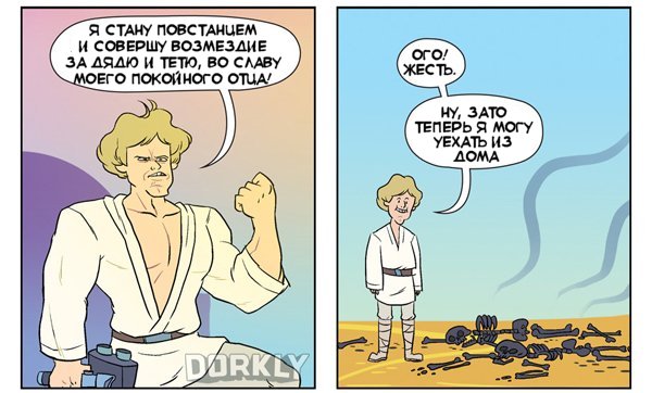 Все мы в детстве любили оригинальные «Звёздные войны», но не все их регулярно пересматривают. Пародисты с сайта Dorkly задались вопросом: а стоит ли? Что лучше: помнить «Новую надежду» по первому впечатлению или пересмотреть, замечая все недостатки?