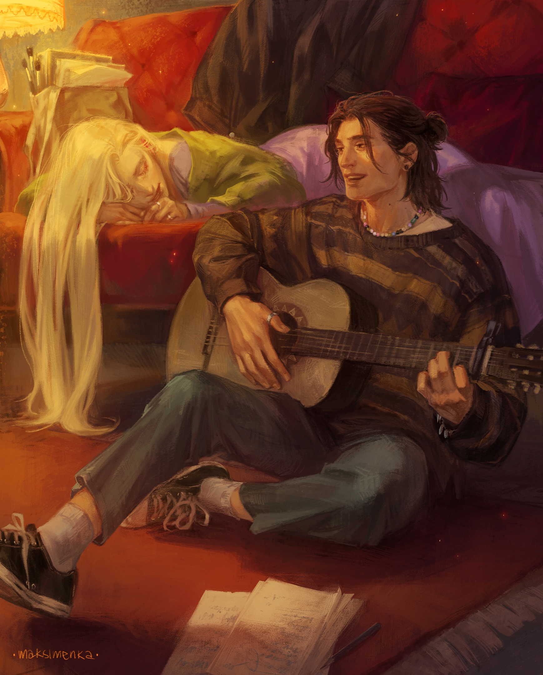 Это рисунок моих героев для комикса. Случился спонтанно, интерьером и светом оброс постепенно, планировался как стадик с фотографии. И я безумно его люблю. В первый раз за долгое время получилось создать камерную атмосферу, в которую хочется нырнуть. Мне нравится рисовать своих героев, даже если сами иллюстрации не «относятся к делу» и касаются событий истории. Через такие вещи получается познакомиться с персонажами и узнать их лучше.