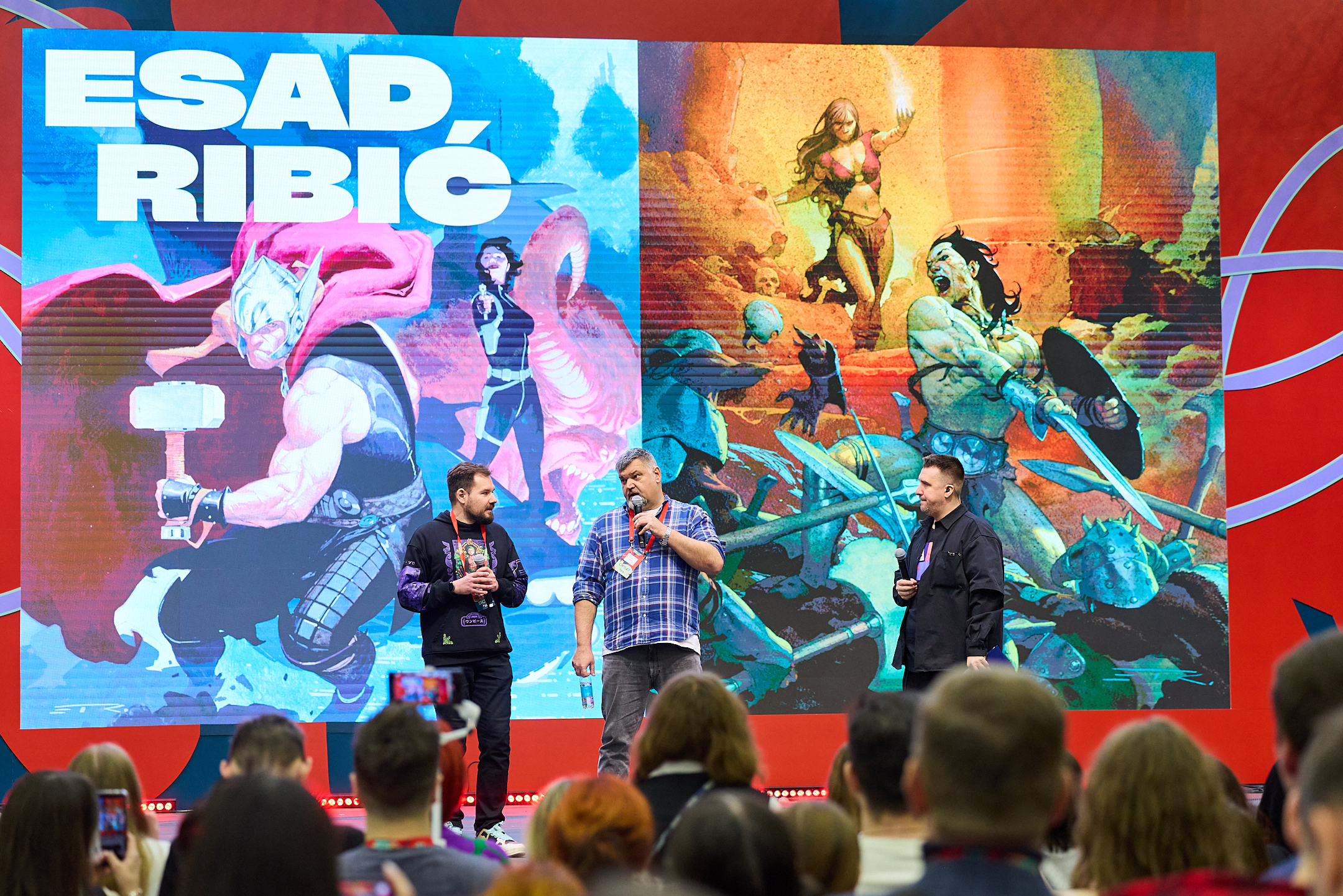Главным событием первого дня стала встреча с художником комиксов Marvel «Тор» и «Серебряный Сёрфер» Эсадом Рибичем. Он пообщался с поклонниками, ответив на их вопросы. Художник первый раз приехал в Россию и уже оценил московскую погоду: сказал, что ему всё нравится. В разговоре Рибич признался, что у него нет любимого персонажа из Marvel, а самым важным в карьере назвал комикс про Локи. В начале творческого пути Рибич вдохновлялся работами Фрэнка Фразетти и Джона Бьюсема, а также классической живописью, например полотнами Караваджо. Любимым анимационным фильмом художник назвал «Фантазию» студии Disney, а среди экранизаций комиксов выделил картины «Конан-варвар», «Тень» и «Ракетчик».