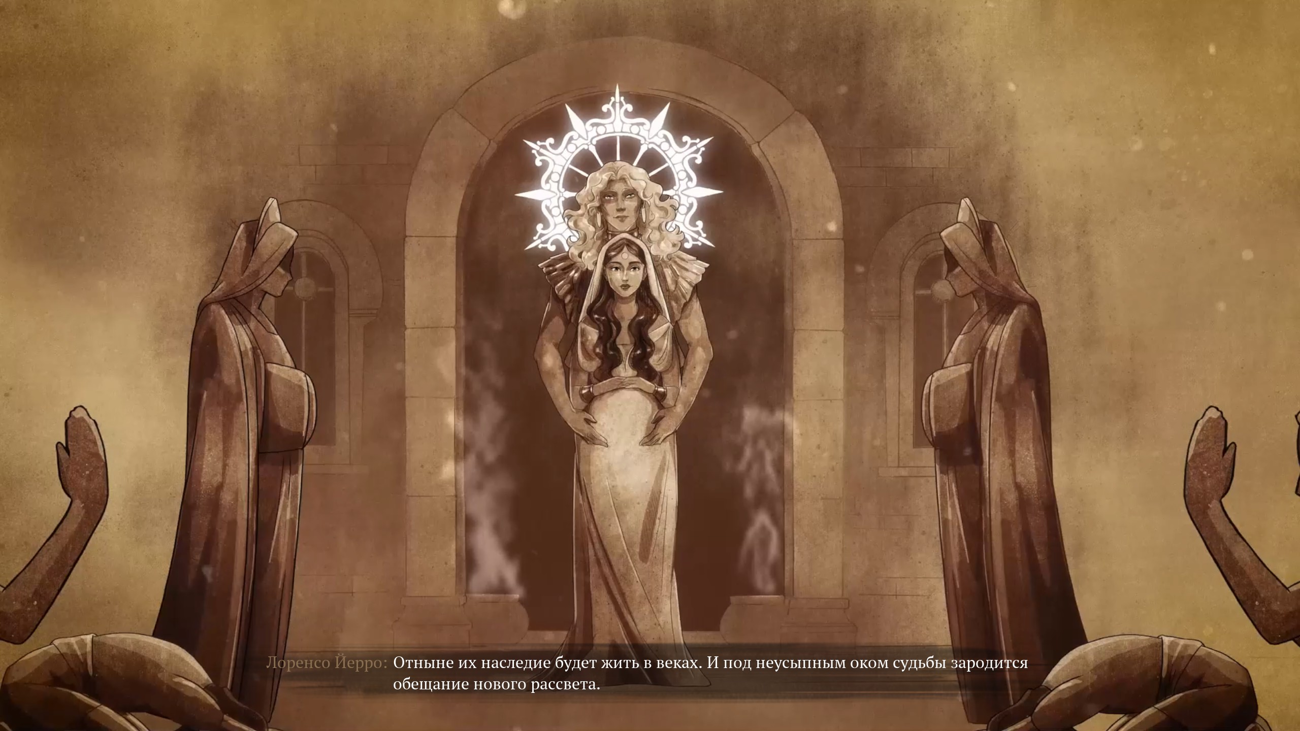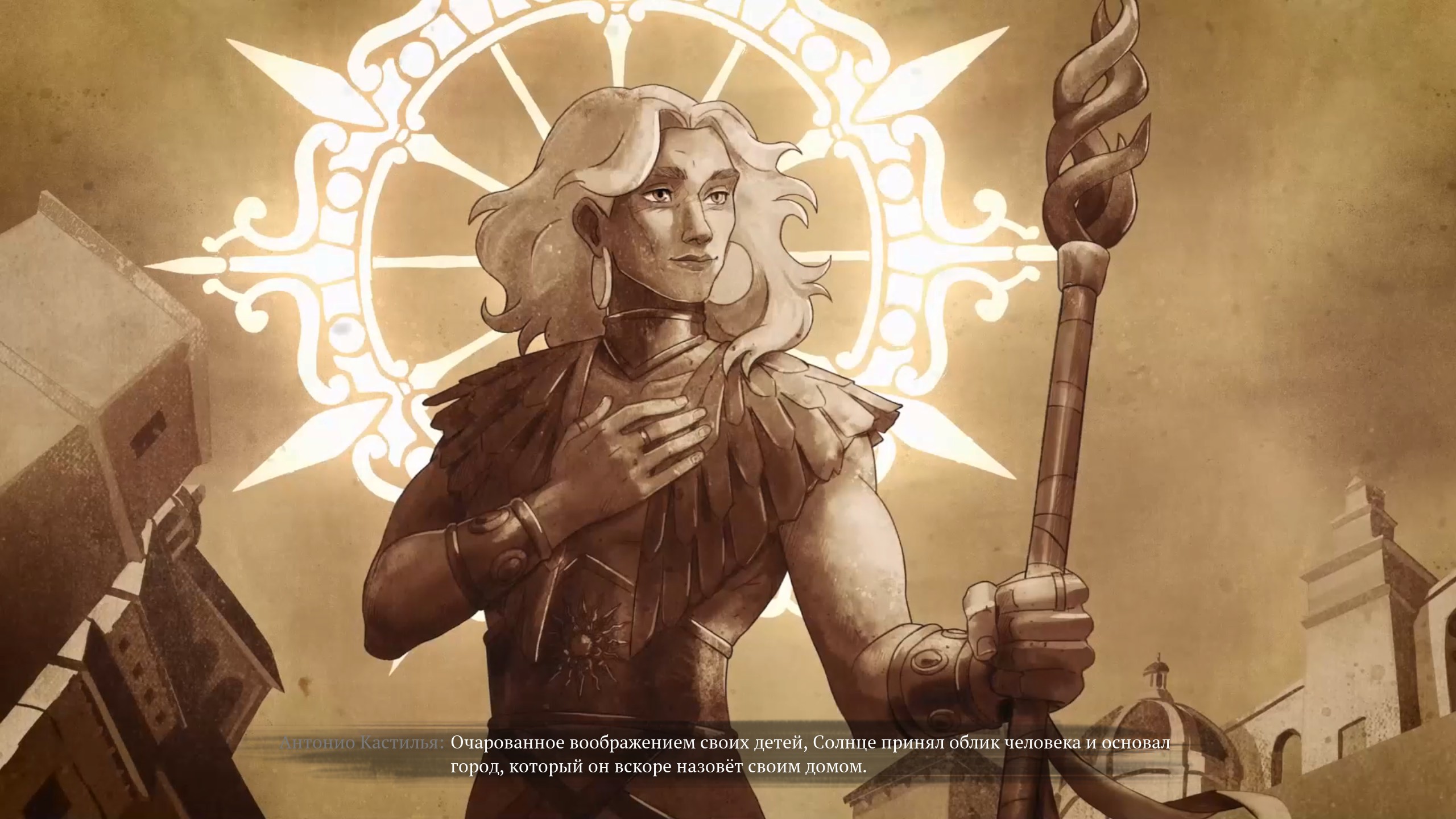 Впрочем, и само Солнце не так просто — чем дальше продвинется Эстакадос в погоне за Морем, тем больше узнает о своём боге, и открытое ему не понравится. Подогревать сомнения в инквизиторе будут главный антагонист большей части игры Падре Арройо и лидер местных солари, очаровательная и непосредственная Медиодия. Эта парочка абсолютно намеренно подталкивает Эстакадоса к нужным выводам, но что будет дальше — уже спойлер.