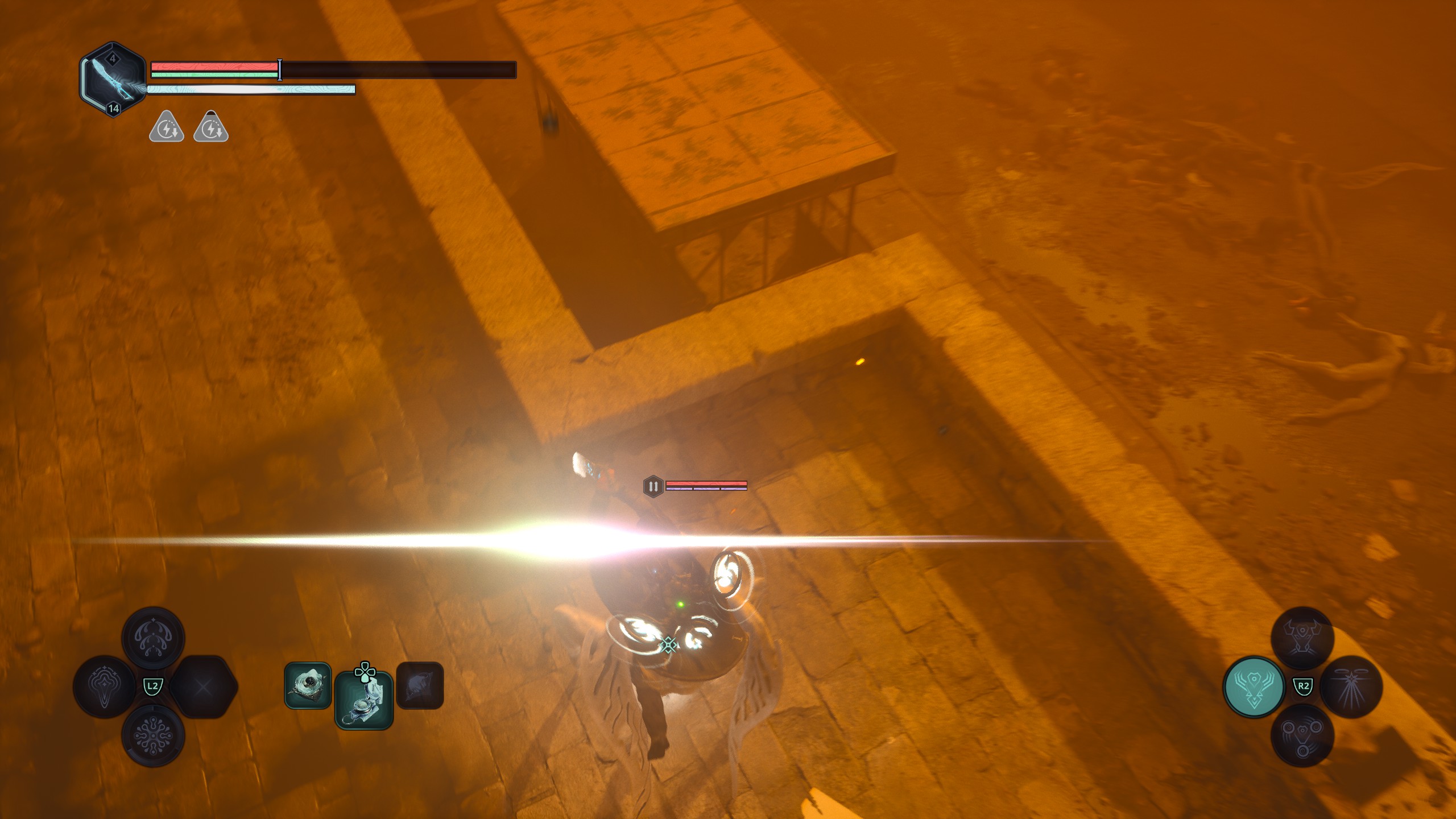 О боевой системе скажу коротко: она простая, но вариативная и динамичная. Это не souls-like, цена ошибки здесь намного ниже, а упор сделан на комбинирование активных способностей от оружия и дрона. Врагов немного, боссов всего два, но на 25–30 часов прохождения с выполнением побочек геймплейных и боевых ситуаций мне хватило, чтобы не заскучать.