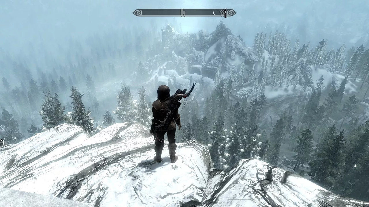Вместо туманных просторов Morrowind и зелёных лугов Oblivion действие Skyrim перенесли в заснеженные леса и горы, а чтобы игрок сразу видел богатство местного мира, разработчики не стали ограничивать дальность прорисовки и прятать объекты за туманом. Специально для этого написали особый алгоритм подгрузки детализации.