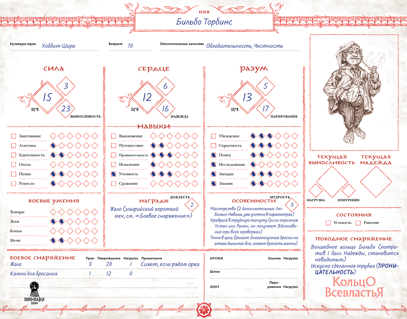 Особняком стоят правила Надежды и Тени. Это особые баллы, которые герой зарабатывает во время игры. Баллы Надежды позволяют использовать черты, умения и навыки, а также особенности оружия, чтобы получить дополнительные кости при бросках. А баллы Тени начисляются в результате плохих поступков и решений, при страхе и сомнениях, а также прикосновении ко злу. Они съедают запас Надежды и в итоге могут сделать героя Несчастным и даже заставить его покинуть отряд или, что ещё хуже, присоединиться к врагу! Со временем Надежду можно восстанавливать, избавляясь от баллов Тени.