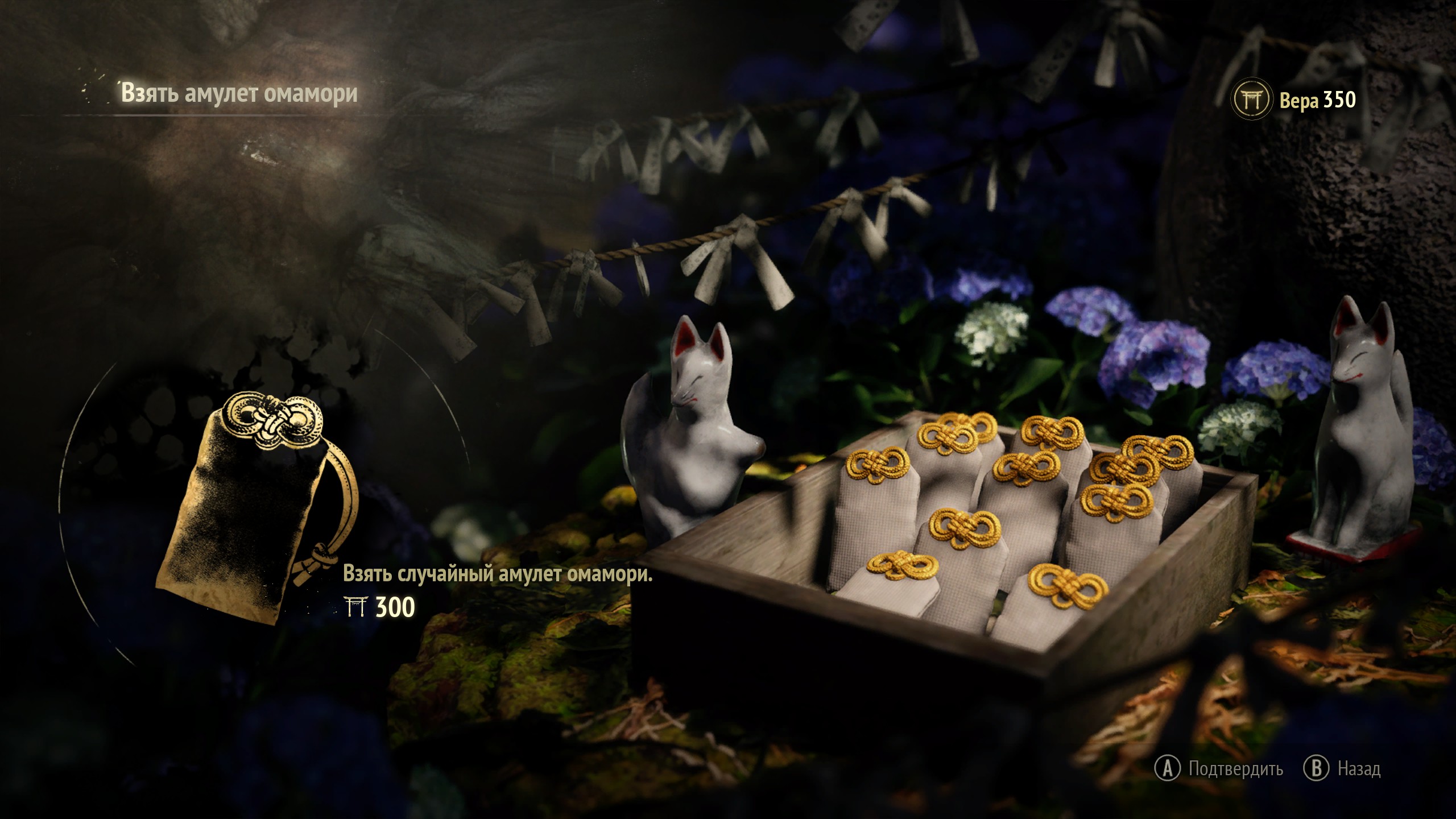 Так же глупо рассыпается и идея с прокачкой и местной валютой, названной верой, на которую можно покупать улучшения здоровья, выносливости и рассудка или амулеты-омори с различными бонусами у святилищ. Авторы подразумевали, что игрок будет либо тратить расходники на веру, либо пользоваться ими для выживания. Но как минимум на уровне сложности «Сюжет» такой выбор вообще не стоит — гораздо проще и выгоднее продавать почти всё. На Hard ситуация обратная: если не рядовые враги, то боссы рано или поздно заставят носить чай для выносливости и тофу для концентрации.