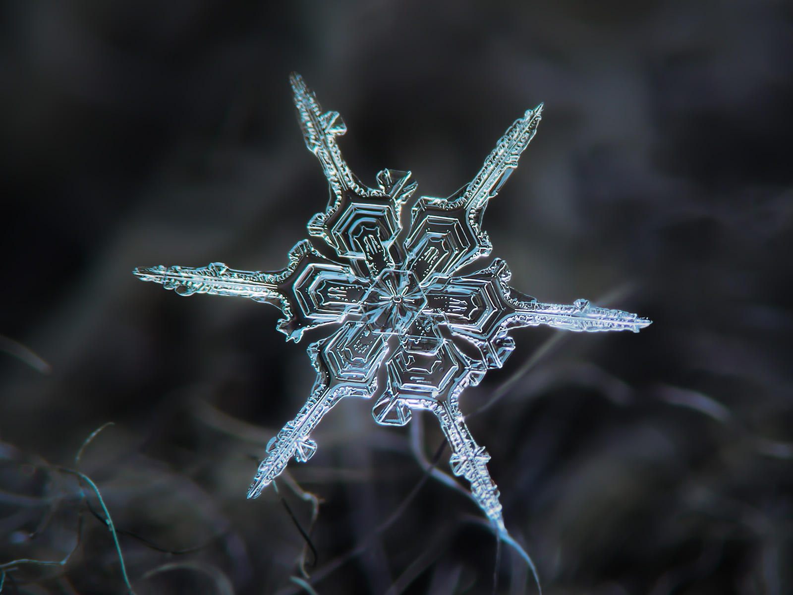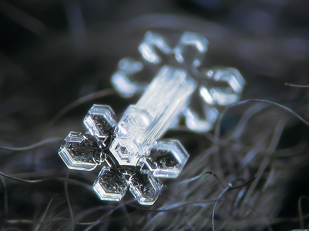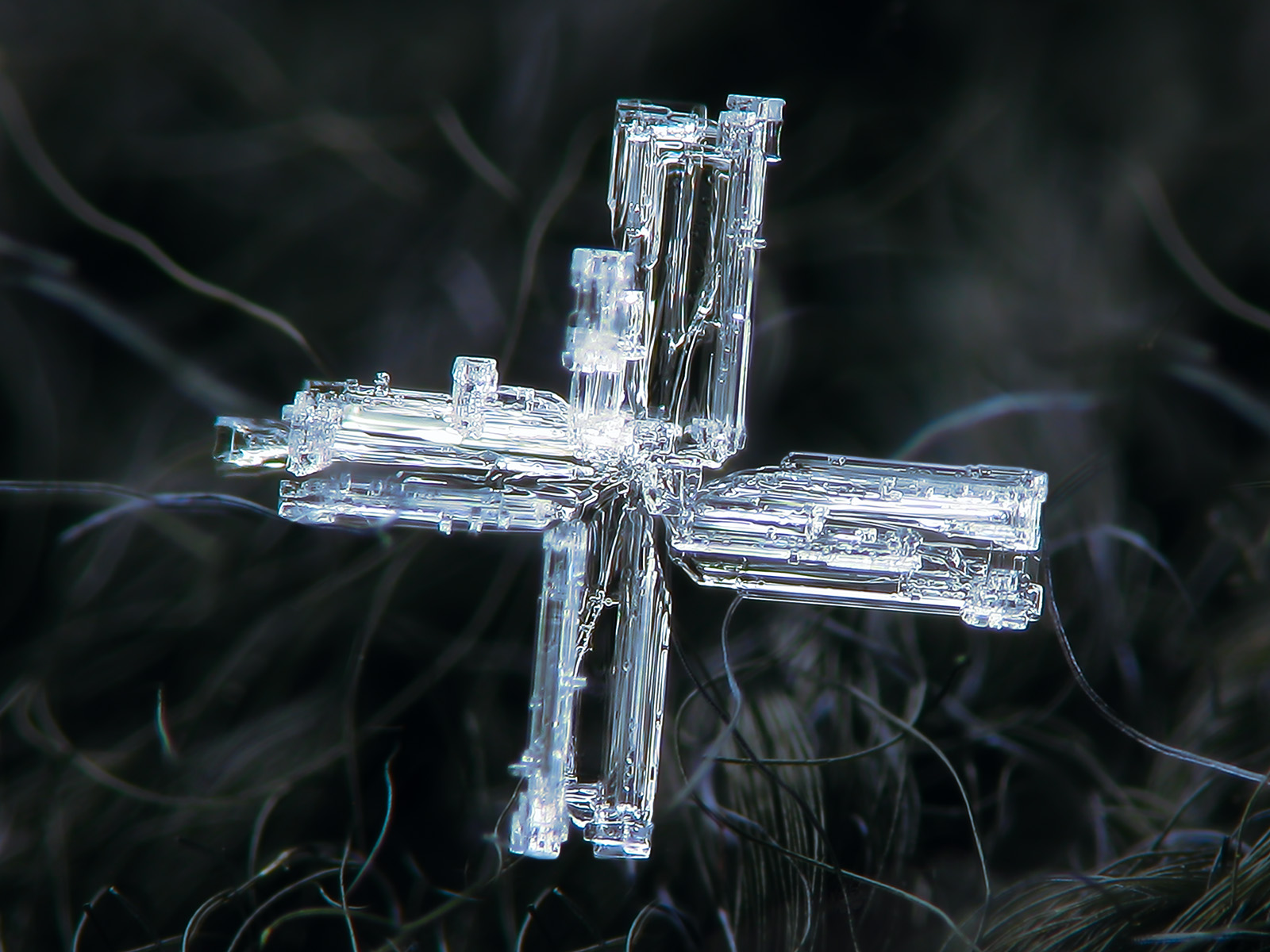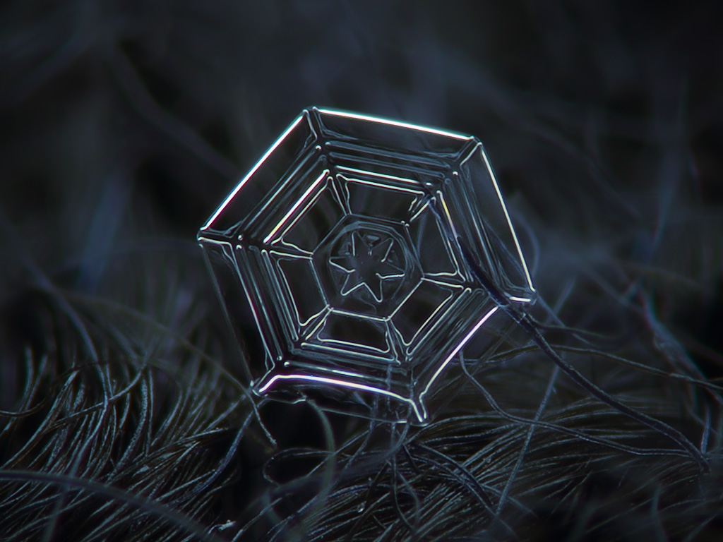 Снежинки некоторых самых редких форм вы можете не увидеть никогда в жизни, поскольку в воздухе они часто слепляются, образуя более сложные, хоть и менее красивые и симметричные структуры. Однако все снежинки в основе своей гексагональны — просто потому, что таково строение молекулы воды. Когда водяной пар замерзает, образуется шестигранная кристаллическая решётка, в которой каждый атом кислорода окружён четырьмя атомами водорода. Привычная нам плоская «звезда» формируется, когда другие молекулы воды быстрее прирастают к кристаллу по краям — таким образом мы видим расходящиеся в стороны «лучи». А «столбики» и «колонны» появляются, если из-за внешних условий (температуры и влажности) кристалл быстрее растёт в другой плоскости — в высоту.
