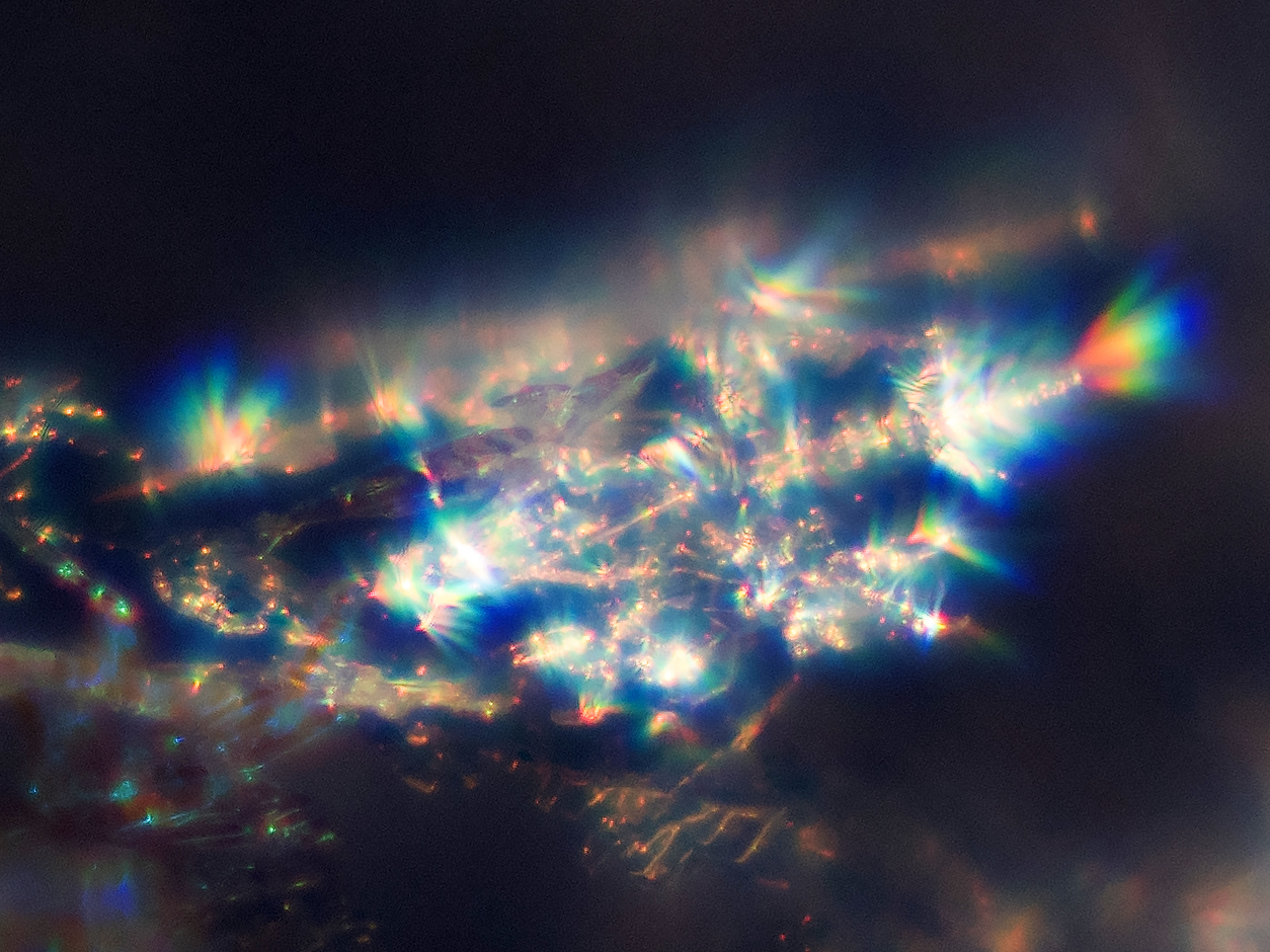Каждая снежинка, как миниатюрная многогранная призма, отражает свет во множестве направлений