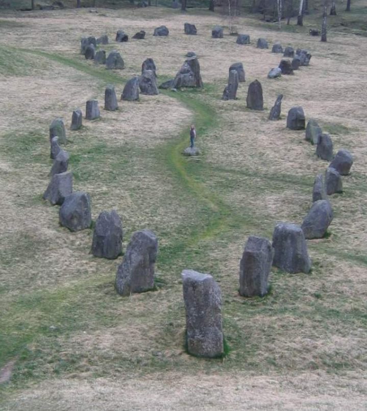 Но самые знаменитые плоские каирны — «лабиринты», встречающиеся в Скандинавии, Финляндии, Англии, на севере России и даже на Новой Земле. Ряды камней образуют запутанную, свивающуюся спиралью тропу. Это наименее заметные и, одновременно, чрезвычайно эффектные мегалиты. Ибо лабиринт — мощный символ, сплетающий реальность. Путь в страну духов извилист.