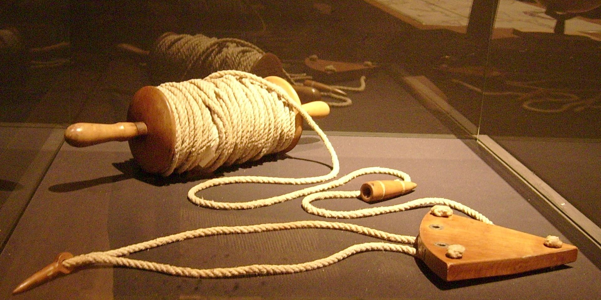 Пала Римская империя, а тёмная Европа не смогла сохранить знание. И главным инструментом штурмана на несколько столетий стал его острый глаз. Наконец, в XVII веке появилось устройство, названное ручным лагом. Он состоял из свободно вращающейся катушки, намотанного на неё троса (лаглиня) с узлами на равных расстояниях и деревянной дощечкой на конце, которая получила название сектор, поскольку представляла собой как бы четвертинку круга. Благодаря такой форме дощечка с грузилом, погружаясь, принимала вертикальное положение. Получался отличный поплавок, который, упав в воду, оставался стоять на месте, в то время как корабль двигался. Чем быстрее двигался корабль, тем больше верёвки успевало смотаться с катушки за полминуты. Узлы на верёвке были навязаны через каждые 50 футов, что равнялось 1/120 мили, времени всегда засекалось 30 секунд, то есть 1/120 часа. Посчитав, сколько узлов сошло с катушки, нетрудно определить скорость. Отсюда и пошла используемая доныне мера скорости «узел», равная одной морской миле в час.
