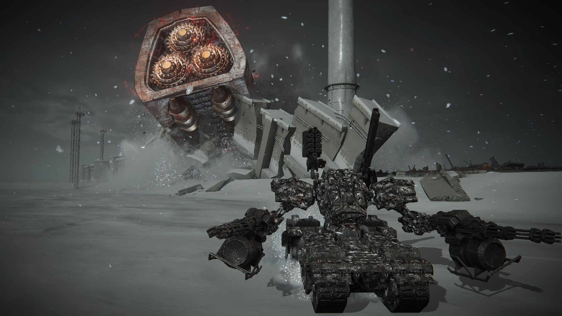 Нет в Armored Core VI и последовательной, детализированной кампании. В меню мы выбираем миссии, которые двигают по чайной ложке глобальный сценарий, или переигрываем старые миссии ради наград. При этом большинство заданий — максимально скучные, пускай и скоротечные боевые операции, где необходимо уничтожить группировку противника, взорвать артиллерию/генераторы/склады или, что ещё прекраснее, собрать данные. Летает эдакий 18-тонный мех по огромной карте и