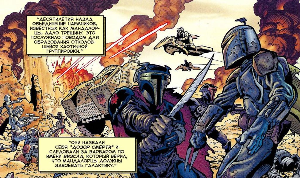 Джанго Фетт — обычный охотник за головами. Я понятия не имею, где он взял эту броню.Впрочем, не все элементы Расширенной вселенной угодили в корзину. «Войны клонов» почерпнули из «Легенд» «Дозор смерти». В новой версии он превратился в полутеррористическую организацию, члены которой мечтали вернуть славное военное прошлое Мандалора.